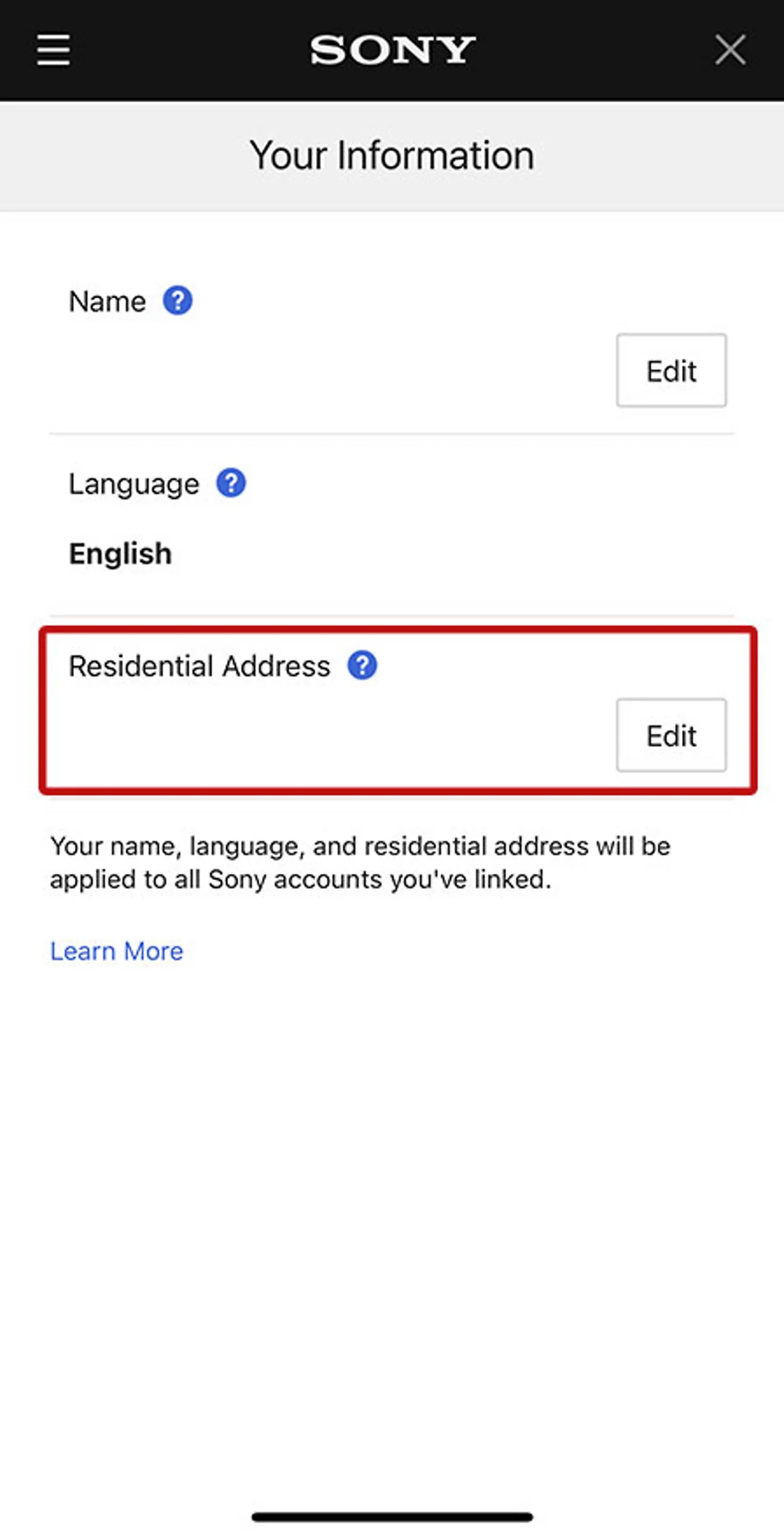 - Select Your Information and Edit your Residential Address.